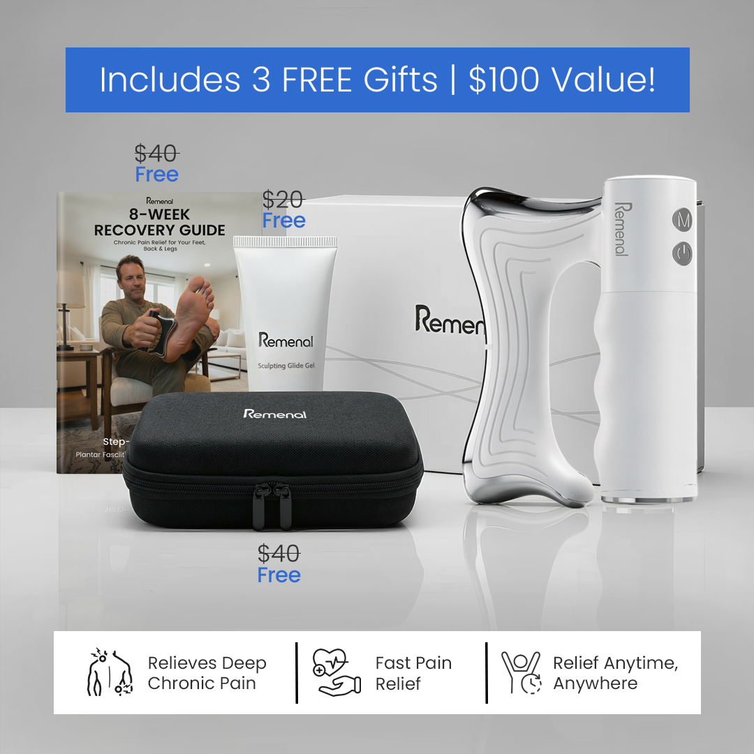 Foam rollers work the surface. Massage guns use percussion — great for general soreness, but they don't address fascial adhesions or reactivate muscles that have stopped firing correctly. The PulseBlade uses four different therapies simultaneously: heat, vibration, EMS micro-currents, and fascia scraping. That combination reaches the deeper tissue where the tightness in IT bands, calves, and plantar fascia actually lives.